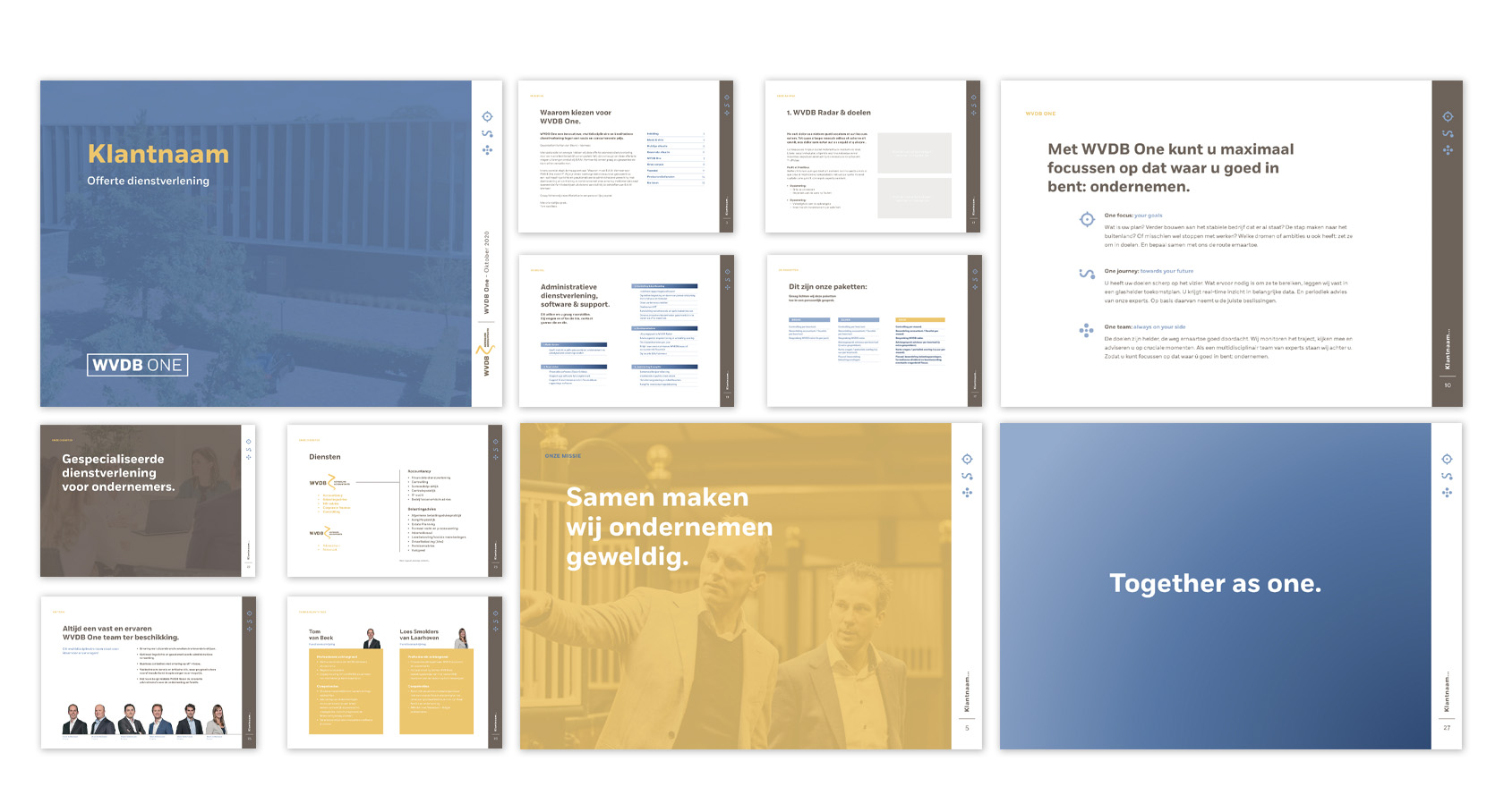 A whole range of resources has now been developed, such as a brochure, flyer, quotation template, PowerPoint, website and script for a short film. Above all, the new style offers numerous elements that WVDB One can apply themselves to generate a recognizable consistent line.