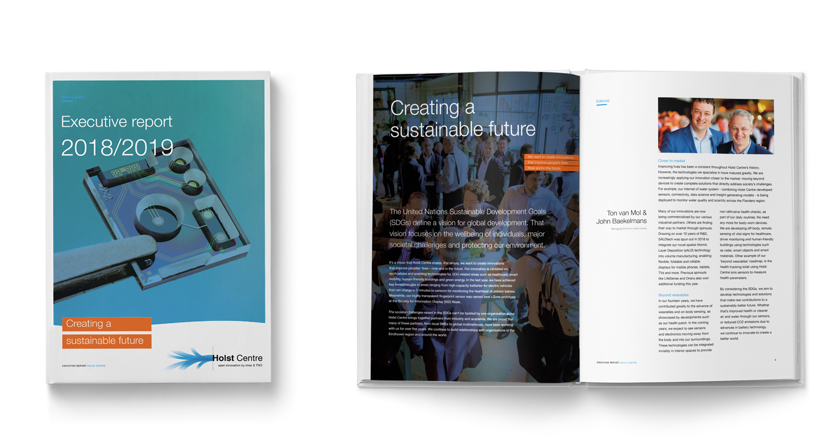 It was up to us to develop a matching style for this day that would be reflected in the Executive Report, the event website and all other associated resources, from key tags to various presentation materials. A style that was embraced by the management and all employees of Holst Centre and contributed positively to a very successful day.