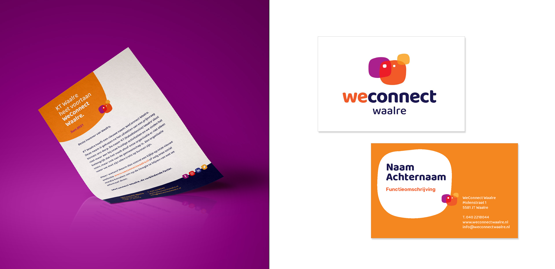 After the process in which we determined the identity of KT Waalre, and arrived at the new name WeConnect Waalre, we started working on the shape of the brand. With the aim of a clear positioning with which it can achieve its objectives for the coming years.