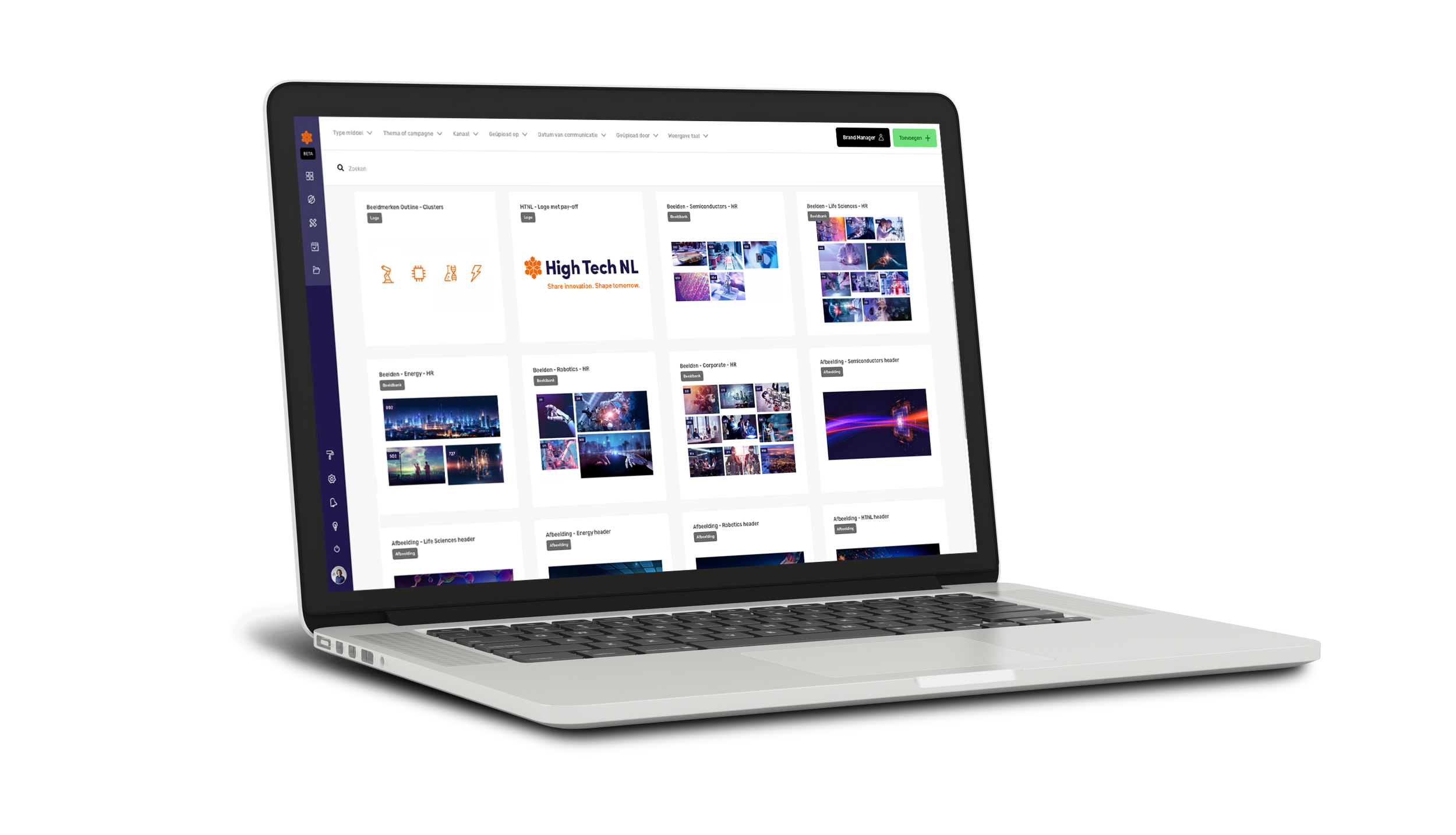 Het creëren van een nieuwe visuele identiteit is natuurkijk supergaaf. Maar even belangrijk is dat dit goed geborgd wordt in de organisatie. Hiervoor hebben we het Brandcenter ingezet, een dynamische online omgeving die meegroeit met het merk. Het Brandcenter is het centrale punt waar alle aspecten en richtlijnen van het merk samenkomen en toegankelijk zijn. Het helpt de communicatieafdeling van High Tech NL om de stijl op de juiste wijze toe te passen waarmee consistentie gewaarborgd blijft.