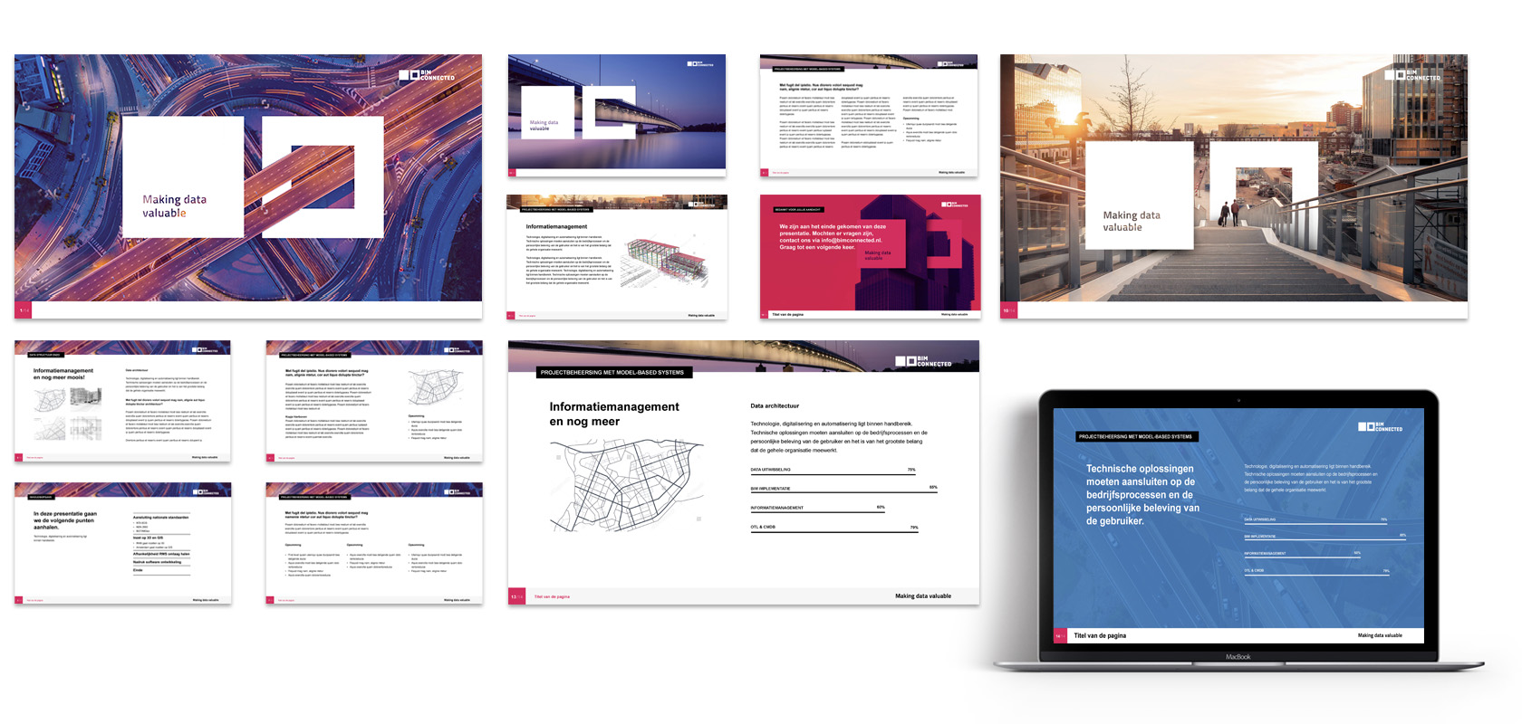 Met behulp van het Brand Identity Canvas™ van DeltaZuid is de identiteit van BIM Connected onderzocht en geanalyseerd. In diverse merksessies zijn alle belangrijke elementen onder de loep genomen, gedefinieerd en vastgelegd in een functioneel naslagwerk, het ID-Book. Dit praktische document helpt om binnen de organisatie de neuzen dezelfde kant op te krijgen, om keuzes te maken, om richting te geven én om knopen door te hakken. Kortom, om een merkgestuurde organisatie te realiseren.